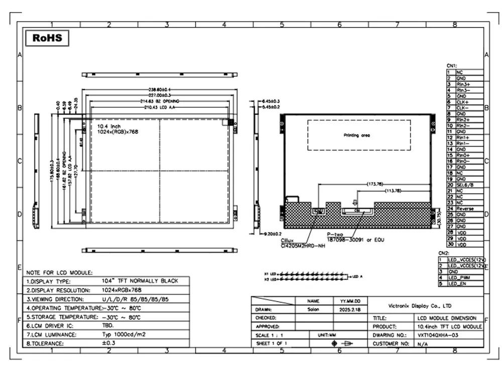 Šis „Victronix“ 10,4 colio 1024 × 768 LVD aukšto ryškumo TFT modulis yra aukštos kokybės 10,4 colio TFT-LCD modulis, sukurtas patikimumui pramoninei aplinkoje. IPS skydelyje su 1024 × 768 skiriamąja geba ir 16,7 milijono spalvų, jis pateikia išskirtinį vaizdinį aiškumą, kai plačiai žiūrėjimo kampai yra 85 ° (3/6/9/12 O'Clock kryptys). Be to, jis siūlo 1000 cd/m² aukštą ryškumą, 1000: 1 kontrasto santykį ir 80% vienodumą, kad būtų galima aiškiai žiūrėti tiesioginiais saulės spinduliais. Kaip profesionalus TFT modulių gamintojas ir tiekėjas Kinijoje, šis „Victronix“ 10,4 colio TFT modulis visiškai atitinka ROHS aplinkos standartus, užtikrindamas aukštesnį taikymo našumą. Mes siūlome pritaikytą paslaugą, kad patenkintume klientų poreikius.
